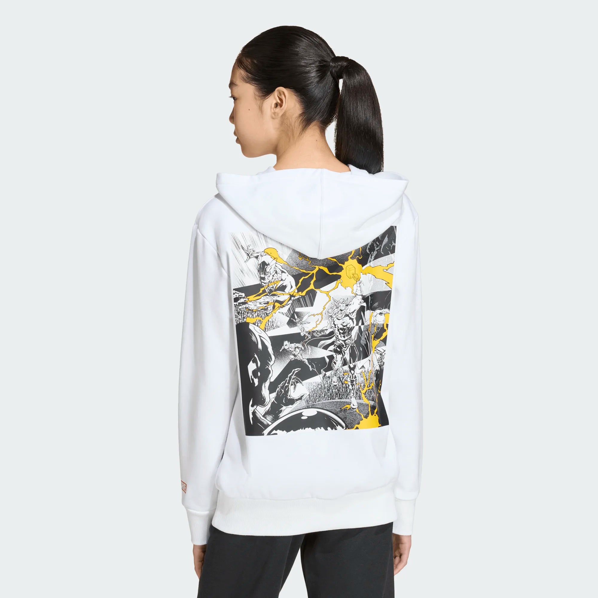 The adidas Real Madrid Avengers Hoodies for kids offer a perfect blend of comfort and fandom. Designed with a regular fit, these hoodies are perfect for young fans who want to express their passion for Real Madrid and the Avengers. The knit construction and drawstring hood ensure a snug fit, making it a great choice for casual wear. Marvel's collaboration adds a unique twist, bringing together Real Madrid and the All Blacks in a comic-inspired design.